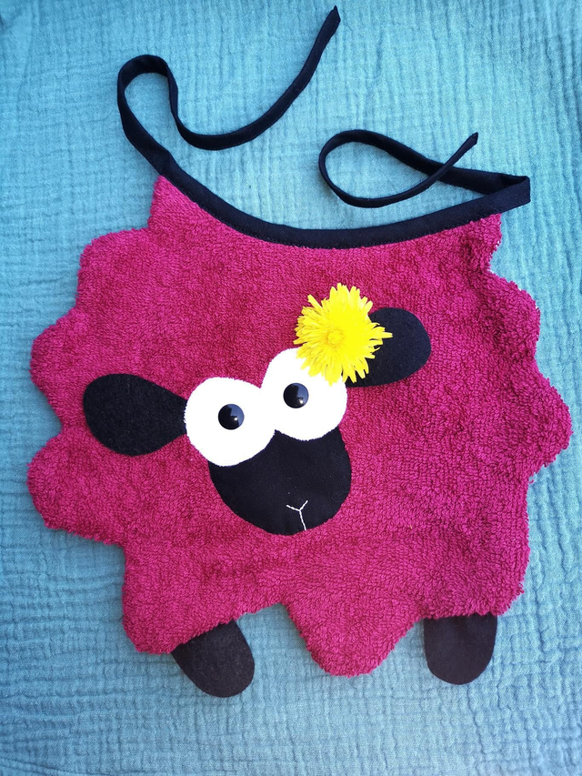 *Bavoir Mouton* Tissu coton éponge, molleton fin, coton & feutrine